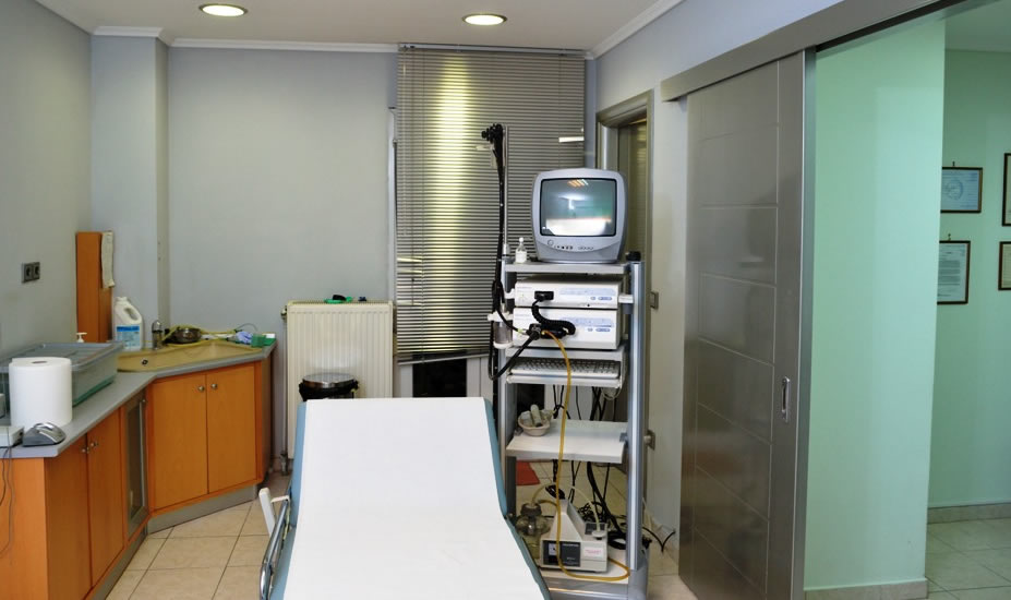 Για τον σκοπό αυτό υπάρχει στην αίθουσα ένας τελευταίας τεχνολογίας ενδοσκοπικός πύργος που περιλαμβάνει την πηγή ψυχρού φωτισμού, τον επεξεργαστή, την αντλία αναρρόφησης, το monitor και τα ενδοσκόπια της εταιρίας Olympus (Olympus Evis Exera II). Μπορεί να γίνει λήψη βιοψιών καθώς και αφαίρεση μικρών πολυπόδων με χρήση διαθερμίας.