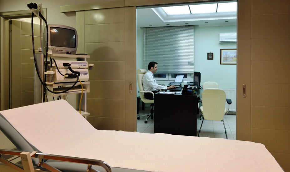 Το ιατρείο διαθέτει αίθουσα αναμονής, το γραφείο του ιατρού και ξεχωριστή αίθουδα ενδοσκοπήσεων με δική της τουαλέτα στην οποία πραγματοποιούνται οι ενδοσκοπήσεις του πεπτικού συστήματος (γαστροσκόπηση, κολονοσκόπηση, σιγμοειδοσκόπηση, ορθοσκόπηση).