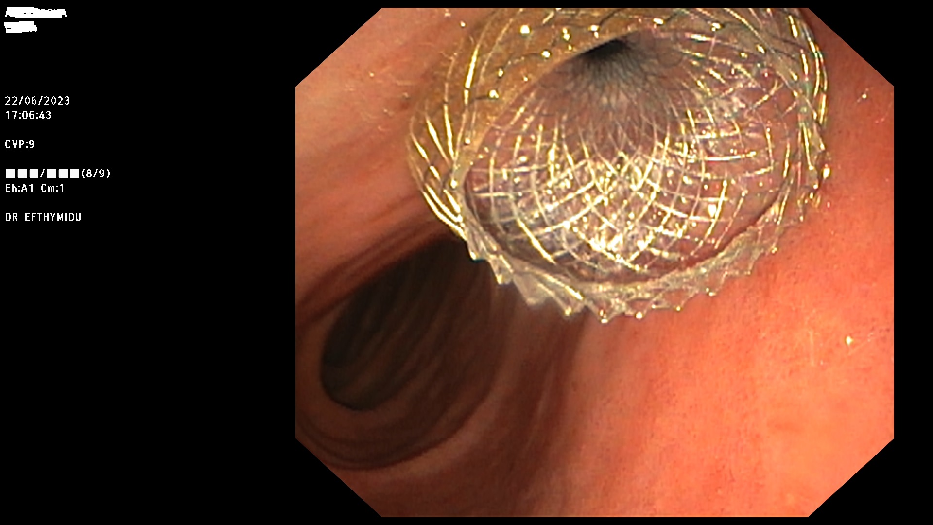 Eνδοσκοπική εικόνα του άκρου του stent στο δωδεκαδάκτυλο