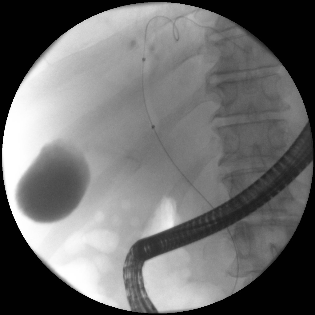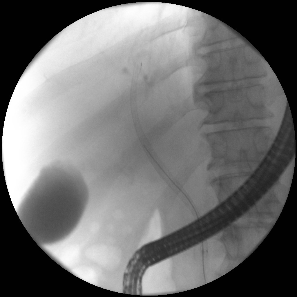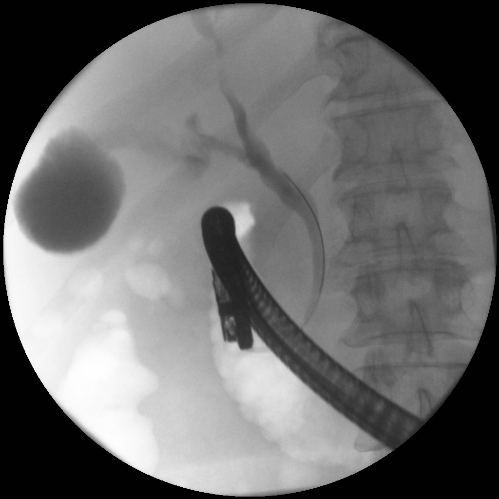 Άνδρας 61 ετών με ανώδυνο αποφρακτικό ίκτερο υποβλήθηκε σε μαγνητική τομογραφία που έδειξε διάταση ενδοηπατικών χοληφόρων με στένωση του κοινού ηπατικού πόρου και της συμβολής του δεξιού και αριστερού ηπατικού πόρου, εικόνα συμβατή με χολαγγειοκαρκίνωμα της πύλης του ήπατος (όγκος Klatskin, Bismuth IV). Επίσης συνυπήρχε θρόμβωση πυλαίας φλέβας, ασκιτικό υγρό και ευμεγέθεις λεμφαδένες πέριξ της κεφαλής του παγκρέατος και στον ηπατοδωδεκαδακτυλικό σύνδεσμο. Το νεόπλασμα κρίθηκε ανεγχείρητο μετά από συζήτηση σε συμβούλιο πολλαπλών ειδικοτήτων και ο ασθενής υποβλήθηκε σε ενδοσκοπική παλίνδρομη χολαγγειο-παγκρεατογραφία (ERCP) για αποσυμφόρηση του ικτέρου. Στην ERCP έγινε λήψη κυττάρων από την περιοχή της στένωσης με βούρτσα κυτταρολογικής, διαστολή της στένωσης με μπαλόνι και επιτυχής τοποθέτηση ακάλυπτου, μεταλλικού stent μήκους 10εκ. Μετά την ERCP, ο ασθενής βελτιώθηκε κλινικά με σημαντική υποχώρηση του ικτέρου.
